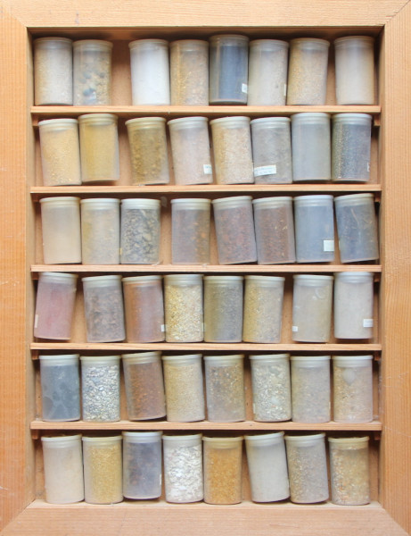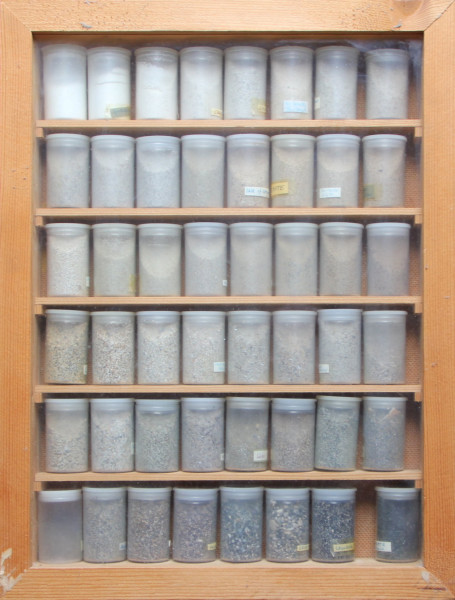 1990 - 2000 Holzrahmen, Plastikdosen, Sand |